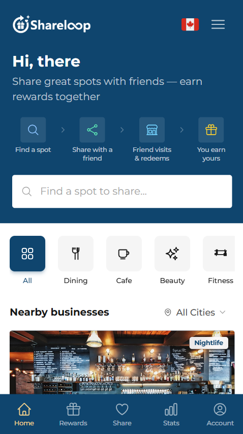 Love sharing local spots? Apply to become a Shareloop Partner and earn commission for every verified visit you drive to businesses.