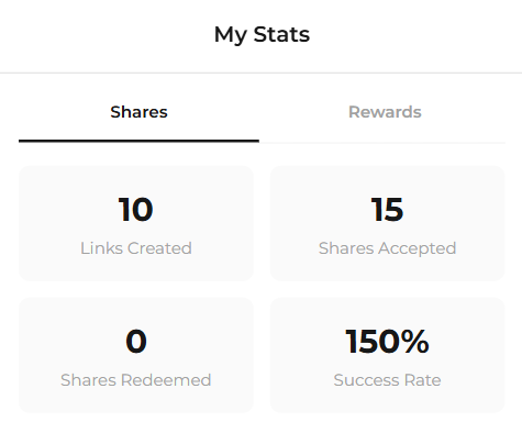 See your shares, accepted referrals, rewards earned, and success rate — all in one dashboard.